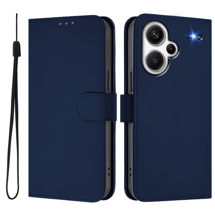 Funda de Cuero con Cordón para Redmi Note 13 Pro+ 5G con Sensación de Piel Global En Color Sólido (Azul Marino)