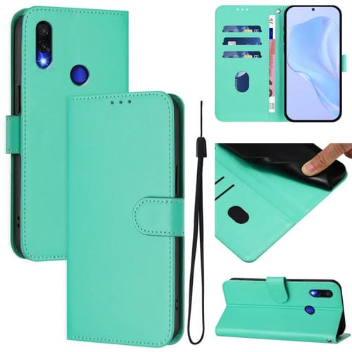 Funda de Cuero con Cordón para Redmi Note 7/7 Pro/7S, Color Sólido y Tacto Suave (Verde)