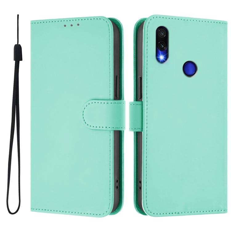 Funda de Cuero con Cordón para Redmi Note 7/7 Pro/7S, Color Sólido y Tacto Suave (Verde Menta)