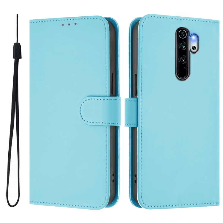 Funda de Cuero con Cordón para Redmi Note 8 Pro Skin Feel de Color Sólido (Azul Cielo)