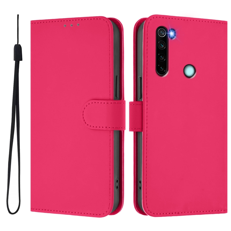 Funda de Cuero con Cordón para Redmi Note 8 Skin Feel de Color Sólido (Rosa Rojo)
