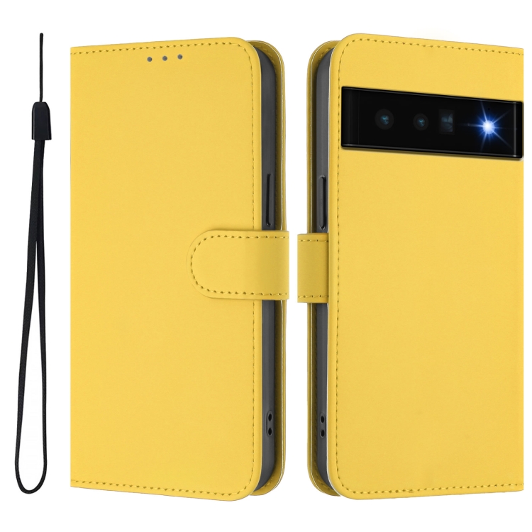 Funda de Cuero con Cordón para Google Pixel 6 Pro (Amarillo Limón) Diseño Piel Liso