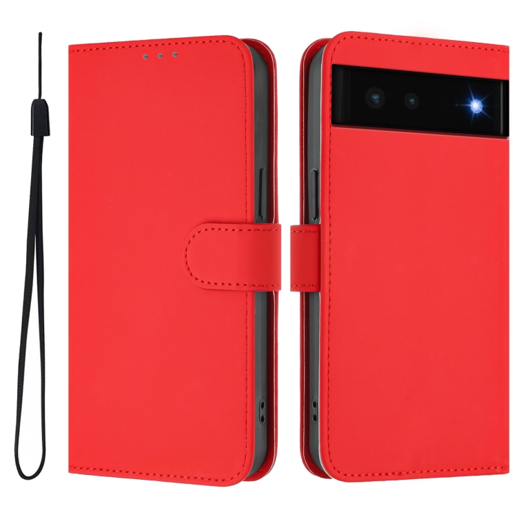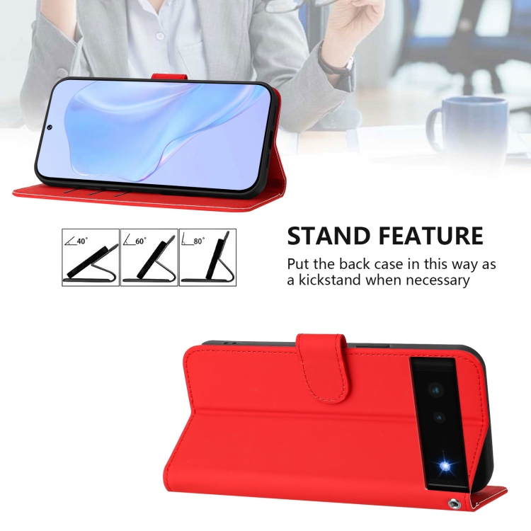 Funda de Cuero con Cordón para Google Pixel 6 (Rojo) Diseño Piel Liso Tacto Agradable