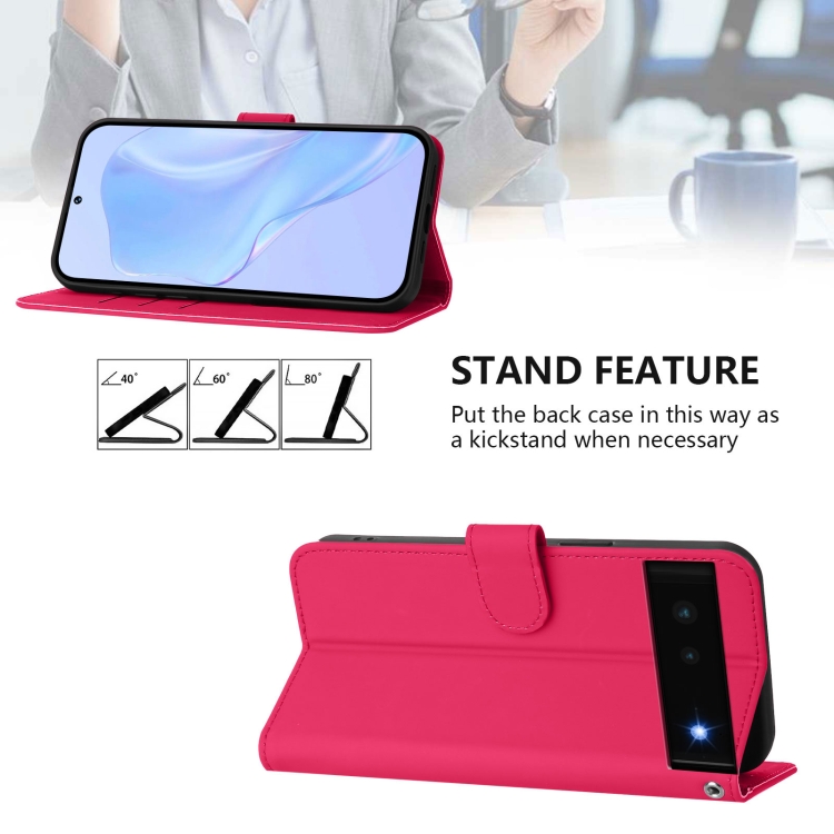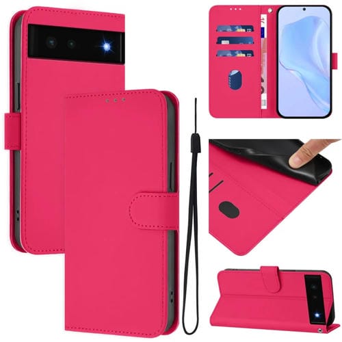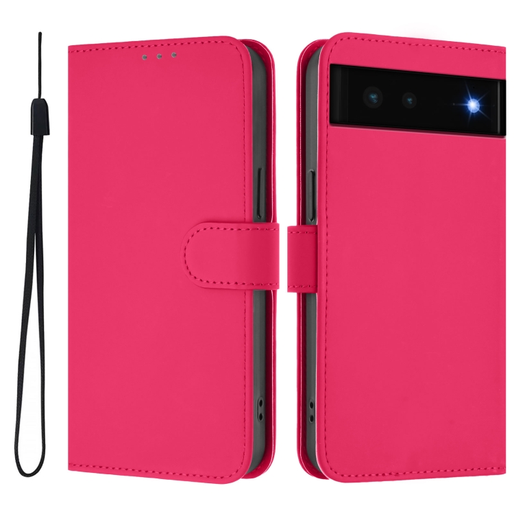 Funda de Cuero con Cordón para Google Pixel 6 (Rojo Rosa) Diseño Liso y Tacto Agradable