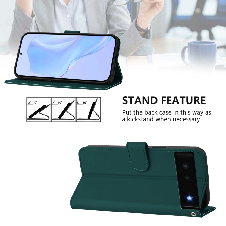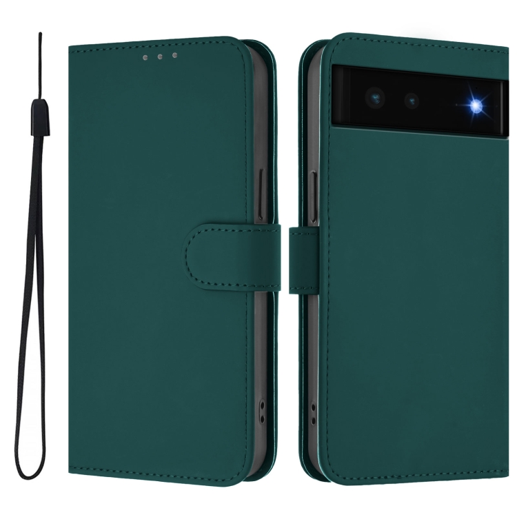 Funda de Cuero con Cordón para Google Pixel 6 (Verde Oscuro) Diseño Piel Liso Tacto Agradable