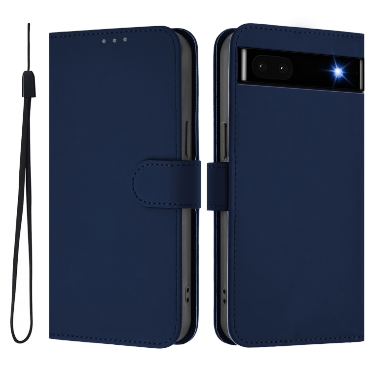 Funda de Cuero con Cordón para Google Pixel 6A (Azul Marino) Diseño Piel Liso Tacto Agradable
