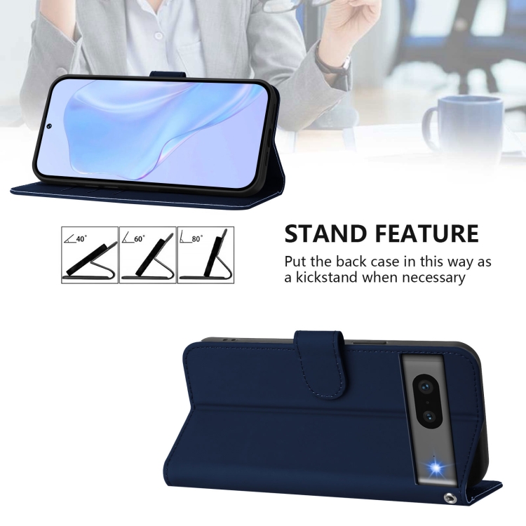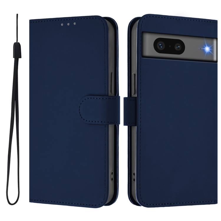 Funda de Cuero con Cordón para Google Pixel 7 (Azul Marino) Diseño Liso y Tacto Agradable