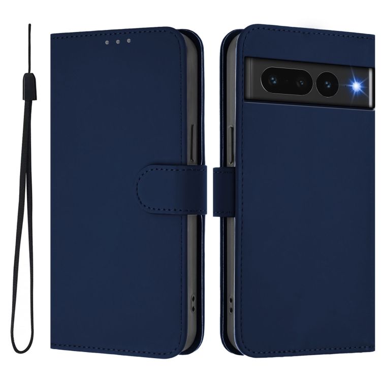 Funda de Cuero con Cordón para Google Pixel 7 Pro (Azul Marino) Diseño Liso y Tacto Agradable