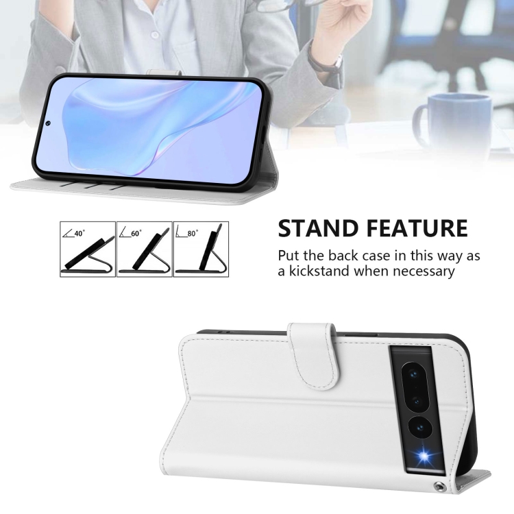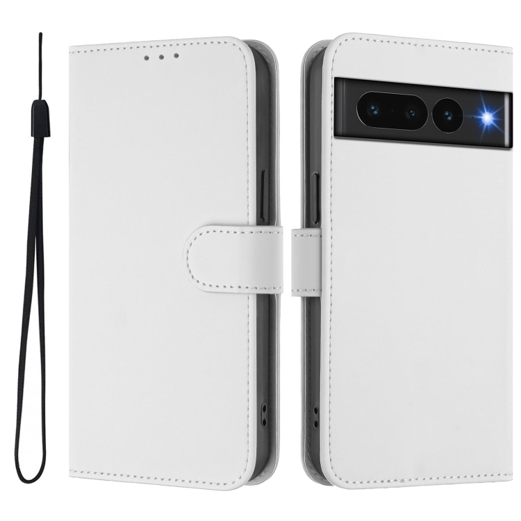 Funda de Cuero con Cordón para Google Pixel 7 Pro (Blanco) Diseño de Piel Liso