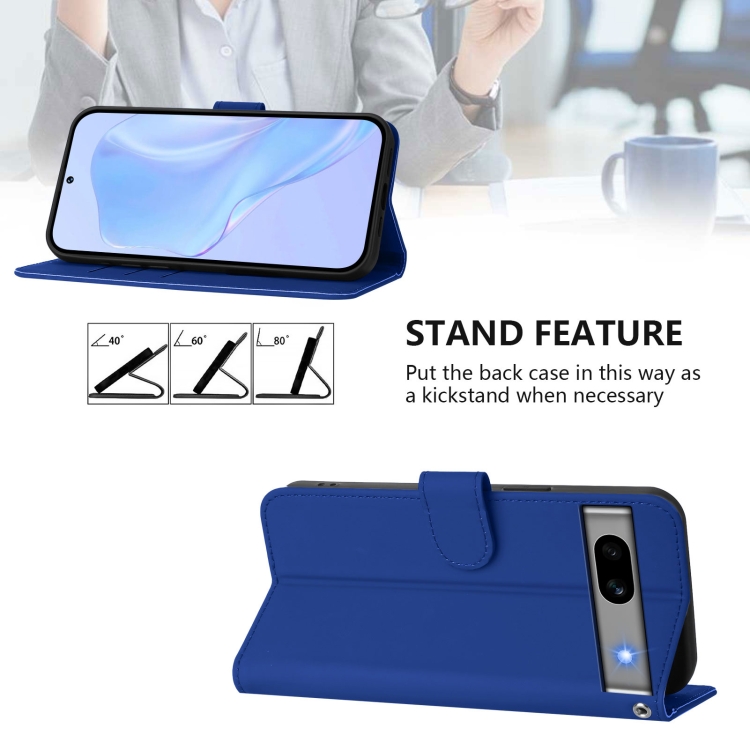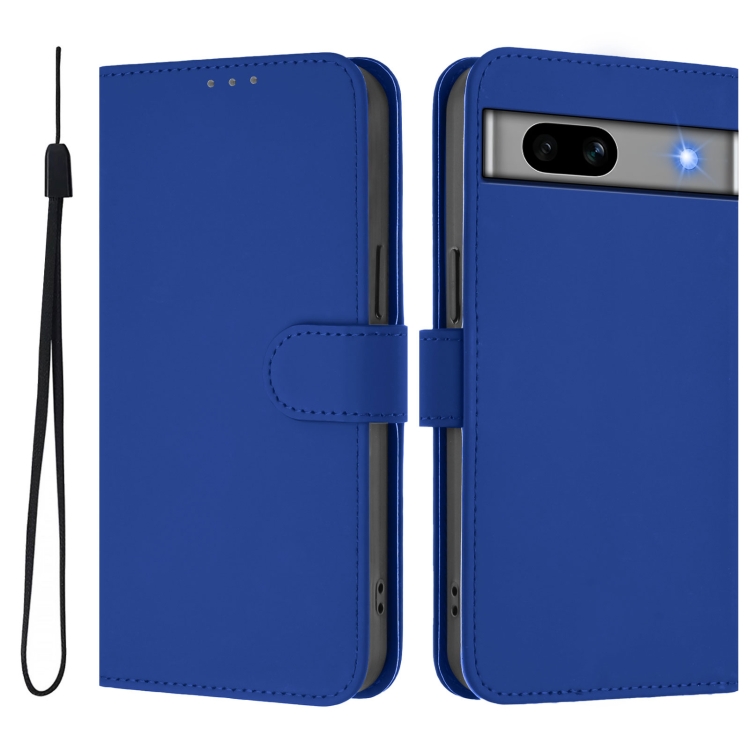 Funda de Cuero con Cordón para Google Pixel 7A (Azul Oscuro) Diseño Piel Liso