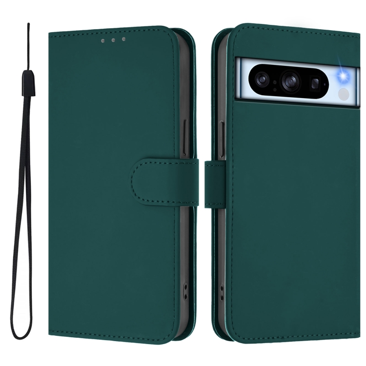 Funda de Cuero con Cordón para Google Pixel 8 Pro (Verde Oscuro) Diseño Piel Liso