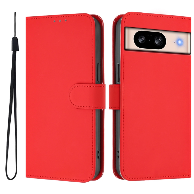 Funda de Cuero con Cordón para Google Pixel 8 (Rojo) Diseño de Piel Liso