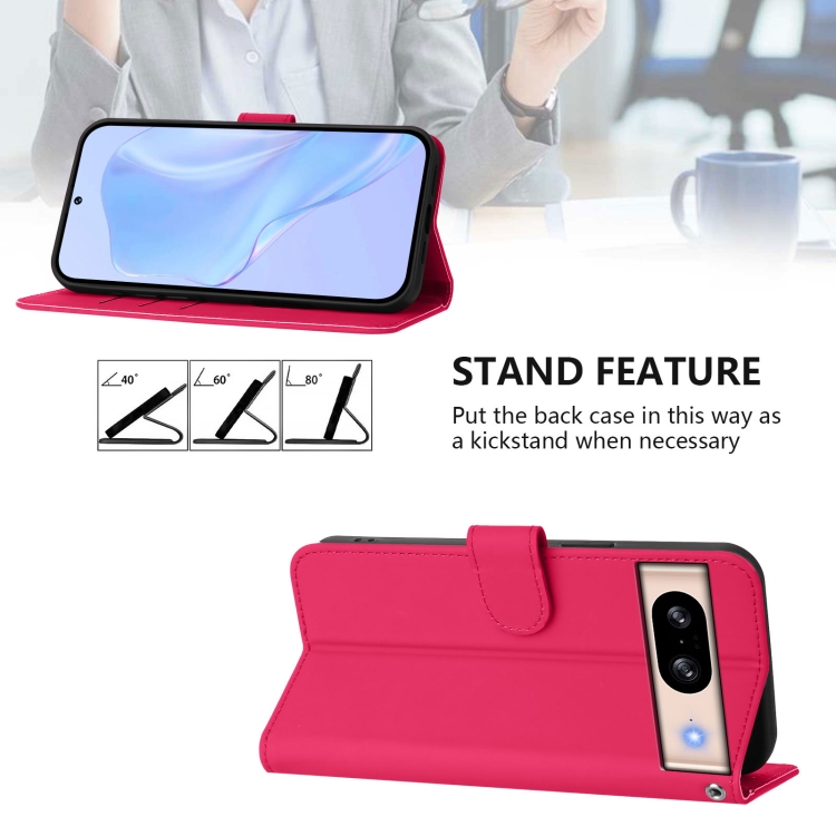 Funda de Cuero con Cordón para Google Pixel 8 (Rojo Rosa) Diseño Piel Liso Tacto Agradable