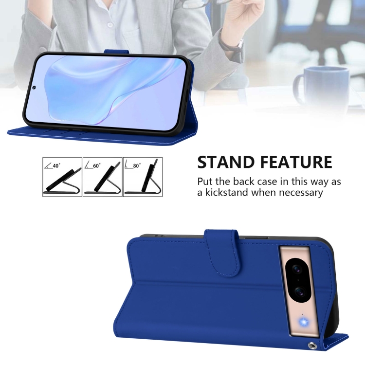 Funda de Cuero con Cordón para Google Pixel 8A (Azul Oscuro) Diseño Piel Liso Tacto Agradable