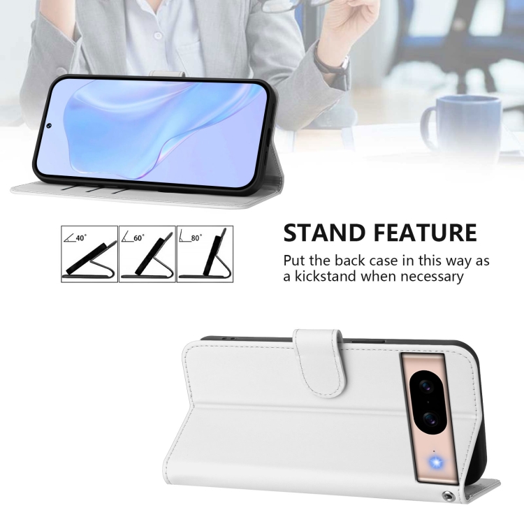 Funda de Cuero con Cordón para Google Pixel 8A (Blanco) Diseño Piel Liso Tacto Agradable