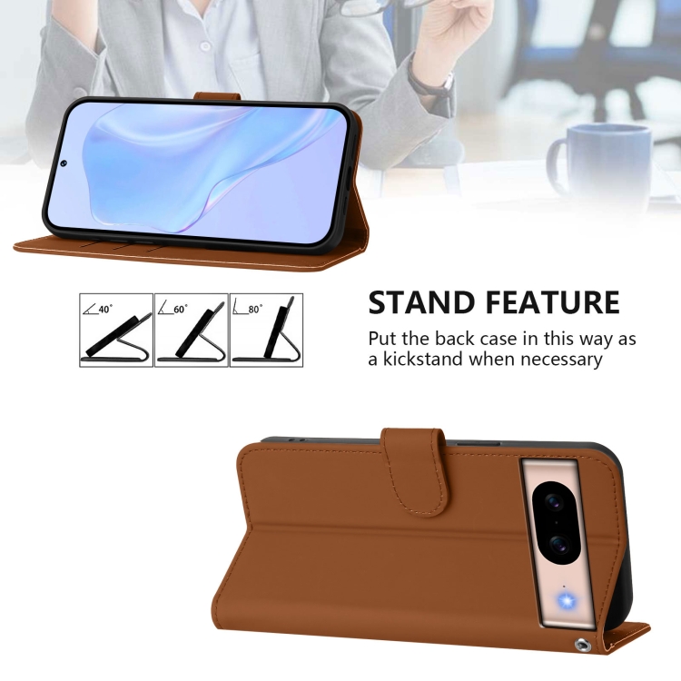 Funda de Cuero con Cordón para Google Pixel 8A (Marrón) Diseño Piel Liso y Tacto Agradable