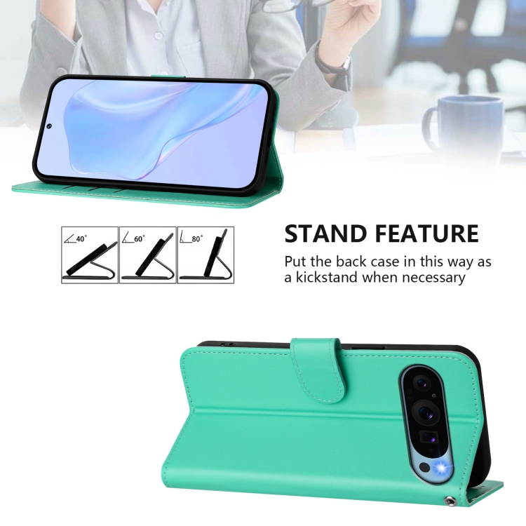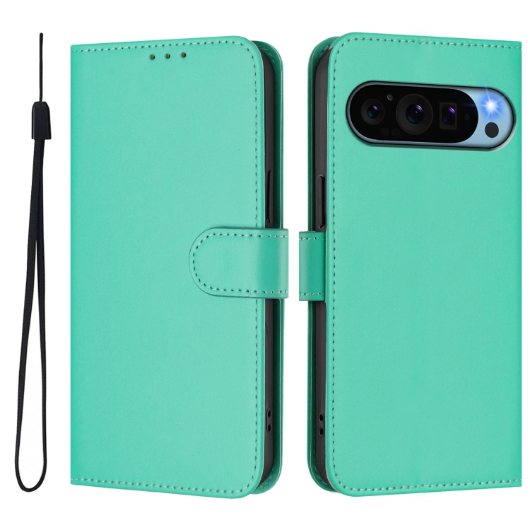 Funda de Cuero con Cordón para Google Pixel 9 y Pixel 9 Pro (Verde)