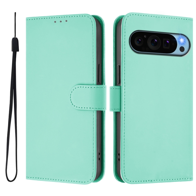 Funda de Cuero con Cordón para Google Pixel 9 y Pixel 9 Pro (Verde Menta)