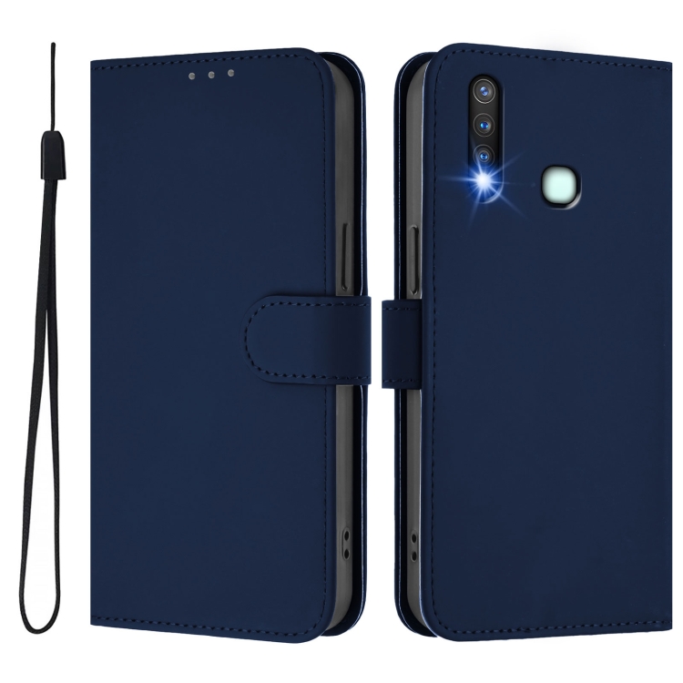 Funda de Cuero con Cordón para Teléfono con Diseño de Piel de Color Liso y Tacto Agradable para la Piel (Azul Marino) para Vivo Y19/U3/Y5S/Z5I/U20