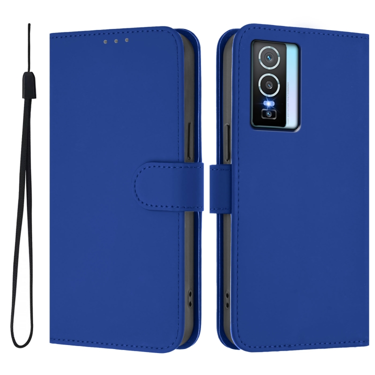 Funda de Cuero con Cordón para Teléfono con Diseño de Piel de Color Liso y Tacto Agradable para Vivo Y76 5G (Azul Oscuro)