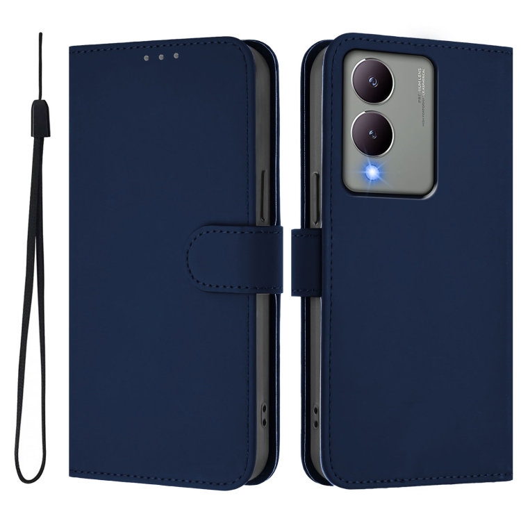 Funda de Cuero con Cordón para Teléfono con Diseño de Piel de Color Liso y Tacto Global para Vivo Y17S 4G (Azul Marino)