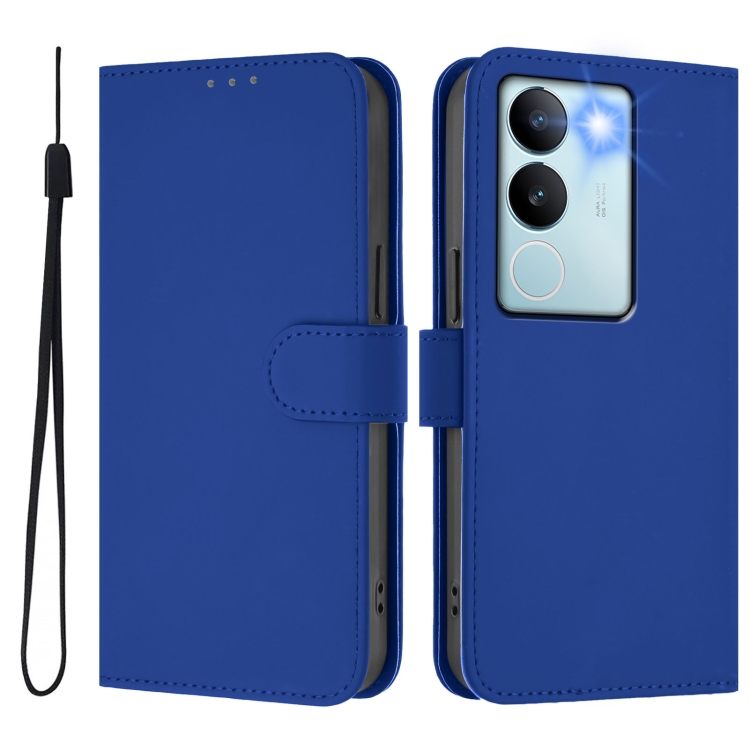 Funda de Cuero con Cordón para Teléfono con Diseño de Piel de Color Liso y Tacto Suave para Vivo V29 5G Global/V29 Pro (Azul Oscuro)