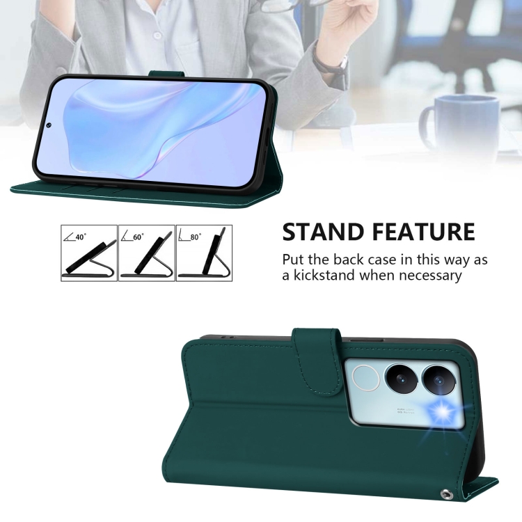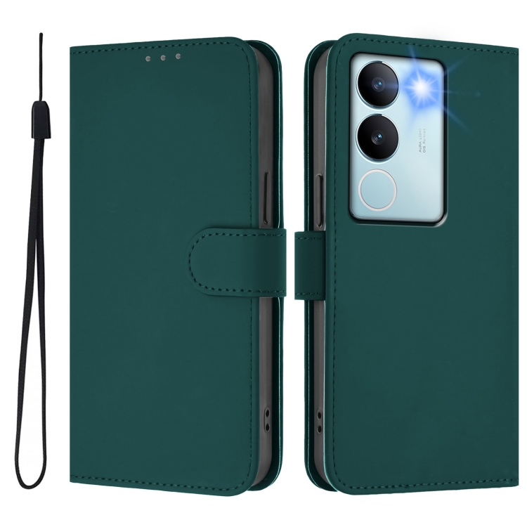 Funda de Cuero con Cordón para Teléfono con Diseño de Piel de Color Liso y Tacto Suave para Vivo V29 5G Global/V29 Pro (Verde Oscuro)