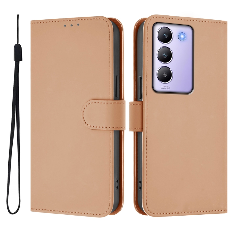 Funda de Cuero con Cordón para Teléfono con Diseño de Piel de Color Liso y Tacto Suave para Vivo Y100 5G Idn/V40 Se 5G (Desnudo)