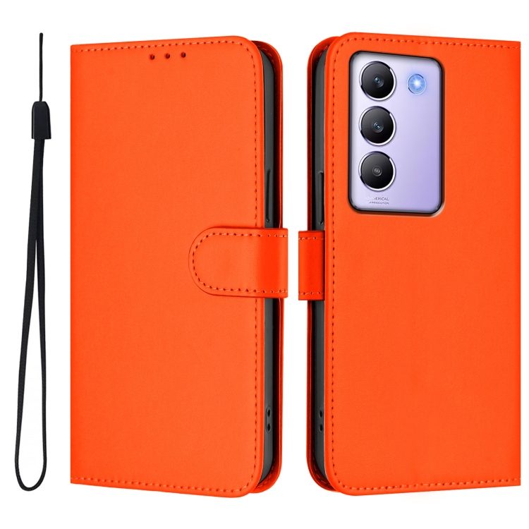 Funda de Cuero con Cordón para Teléfono con Diseño de Piel de Color Liso y Tacto Suave para Vivo Y100 5G Idn/V40 Se 5G (Naranja)