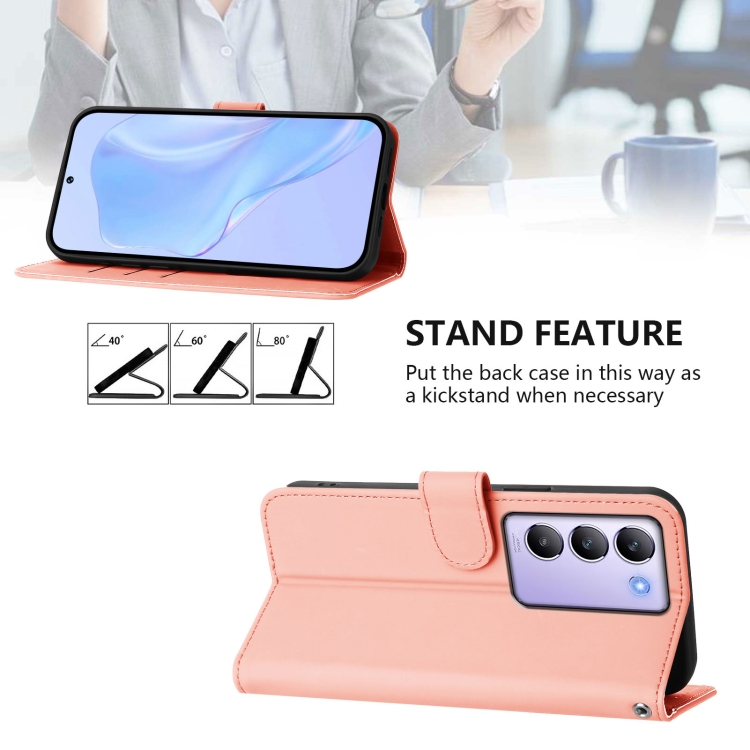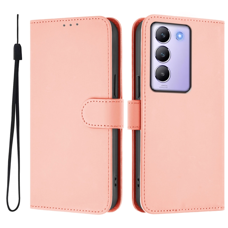 Funda de Cuero con Cordón para Teléfono con Diseño de Piel de Color Liso y Tacto Suave para Vivo Y100 5G Idn/V40 Se 5G (Rosa)