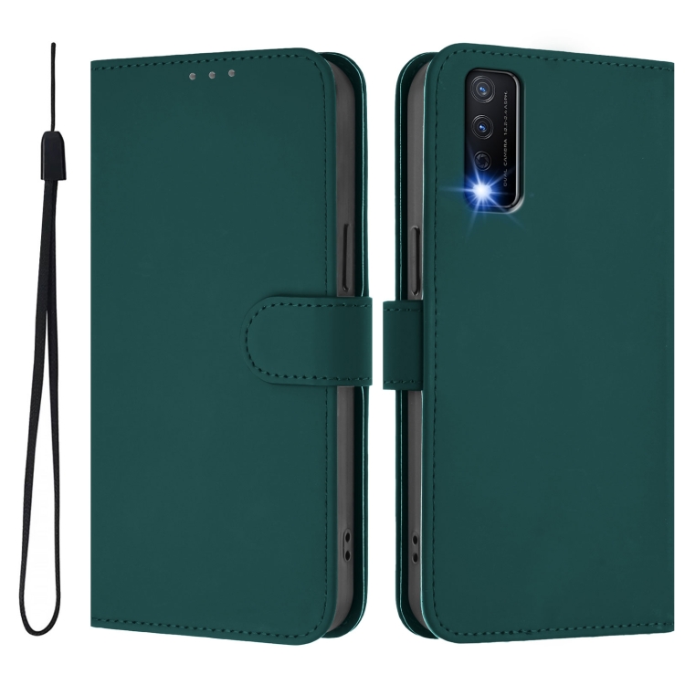 Funda de Cuero con Cordón para Teléfono con Diseño de Piel de Color Liso y Tacto Suave para Vivo Y20/Y20I/Y20S/Y11S (Verde Oscuro)