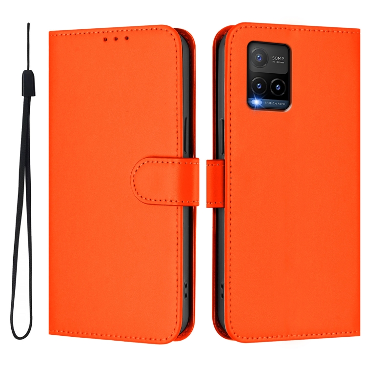 Funda de Cuero con Cordón para Teléfono con Diseño de Piel de Color Liso y Tacto Suave para Vivo Y33S 4G Global / Y21 2021 (Naranja)