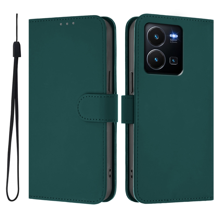 Funda de Cuero con Cordón para Teléfono con Diseño de Piel de Color Liso y Tacto Suave para Vivo Y35 4G Global / Y22S 4G Global (Verde Oscuro)