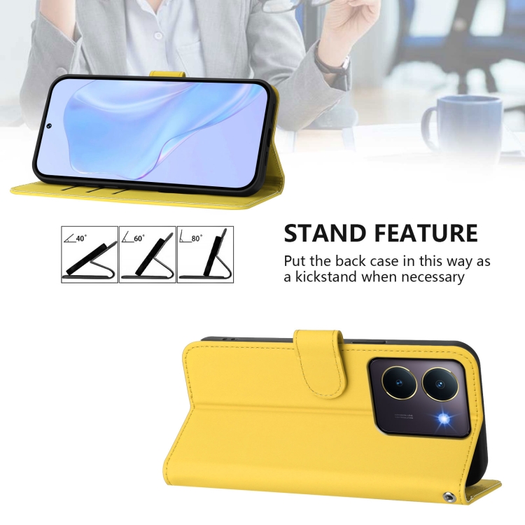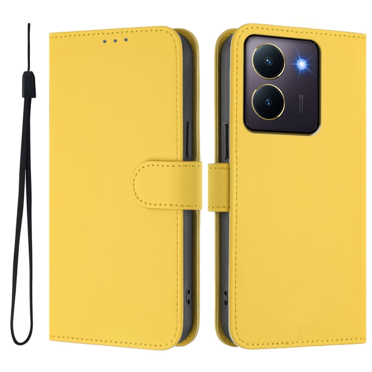 Funda de Cuero con Cordón para Teléfono con Diseño de Piel de Color Liso y Tacto Suave para Vivo Y36 5G Global / Y36 4G Global (Amarillo Limón)