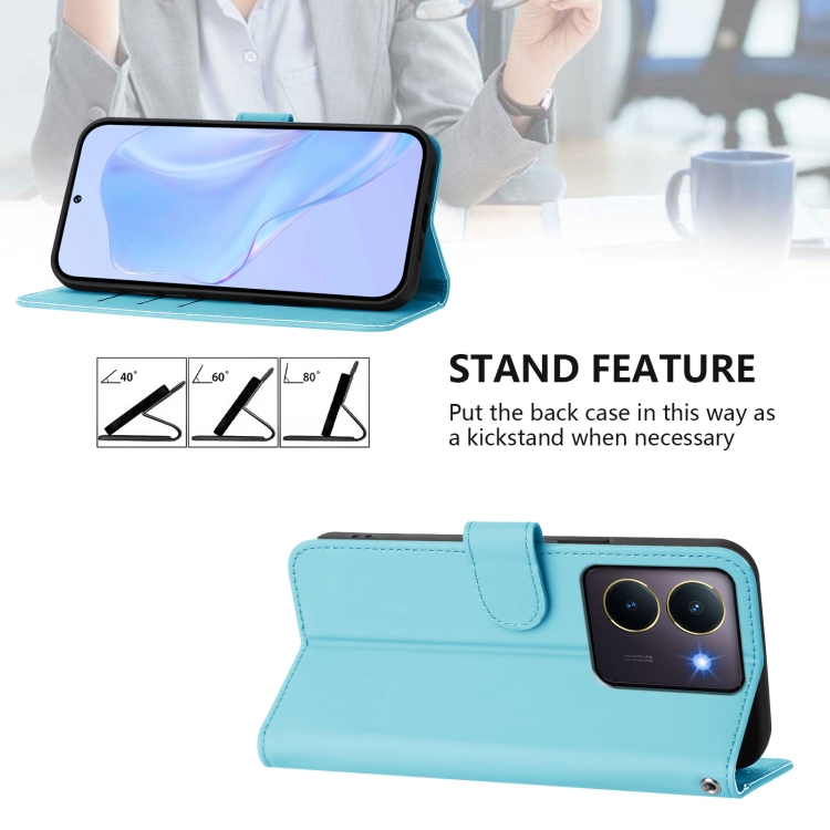 Funda de Cuero con Cordón para Teléfono con Diseño de Piel de Color Liso y Tacto Suave para Vivo Y36 5G Global / Y36 4G Global (Azul Cielo)