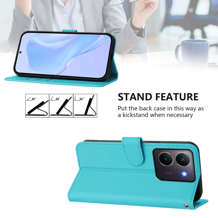 Funda de Cuero con Cordón para Teléfono con Diseño de Piel de Color Liso y Tacto Suave para Vivo Y36 5G Global / Y36 4G Global (Azul Lago)