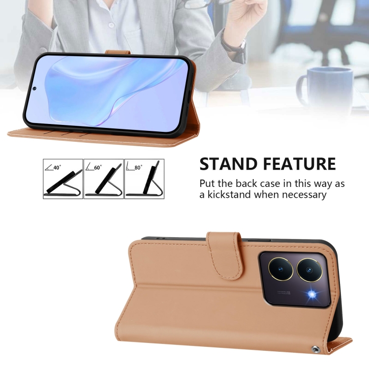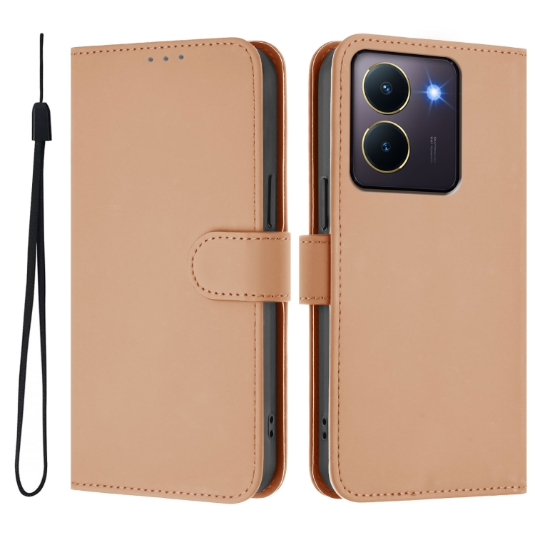 Funda de Cuero con Cordón para Teléfono con Diseño de Piel de Color Liso y Tacto Suave para Vivo Y36 5G Global / Y36 4G Global (Desnudo)