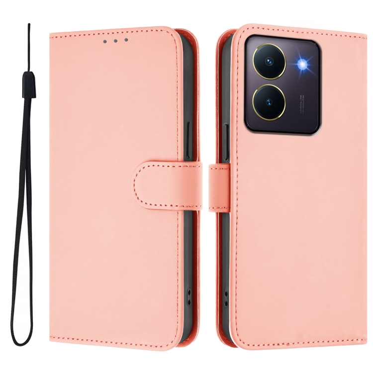 Funda de Cuero con Cordón para Teléfono con Diseño de Piel de Color Liso y Tacto Suave para Vivo Y36 5G Global / Y36 4G Global (Rosa)
