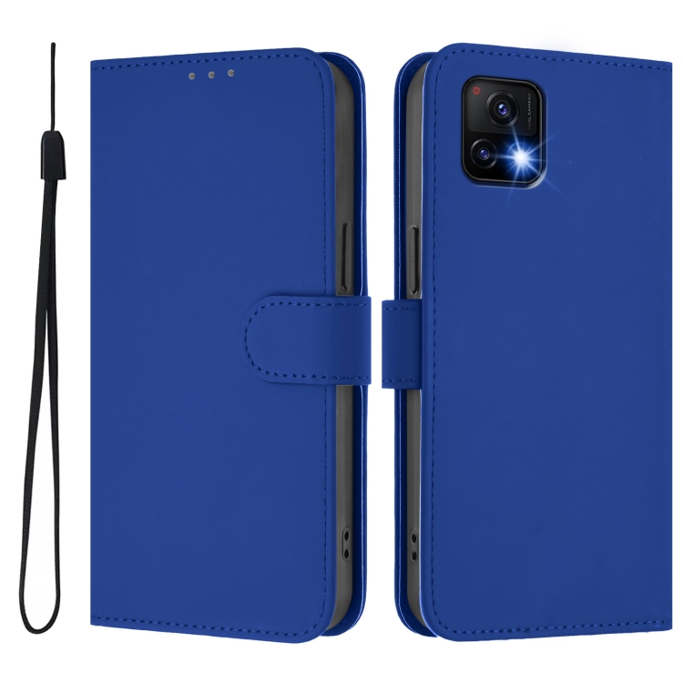 Funda de Cuero con Cordón para Teléfono con Diseño de Piel de Color Liso y Tacto Suave para Vivo Y52S 5G / Iqoo U3 / Y31S 5G (Azul Oscuro)