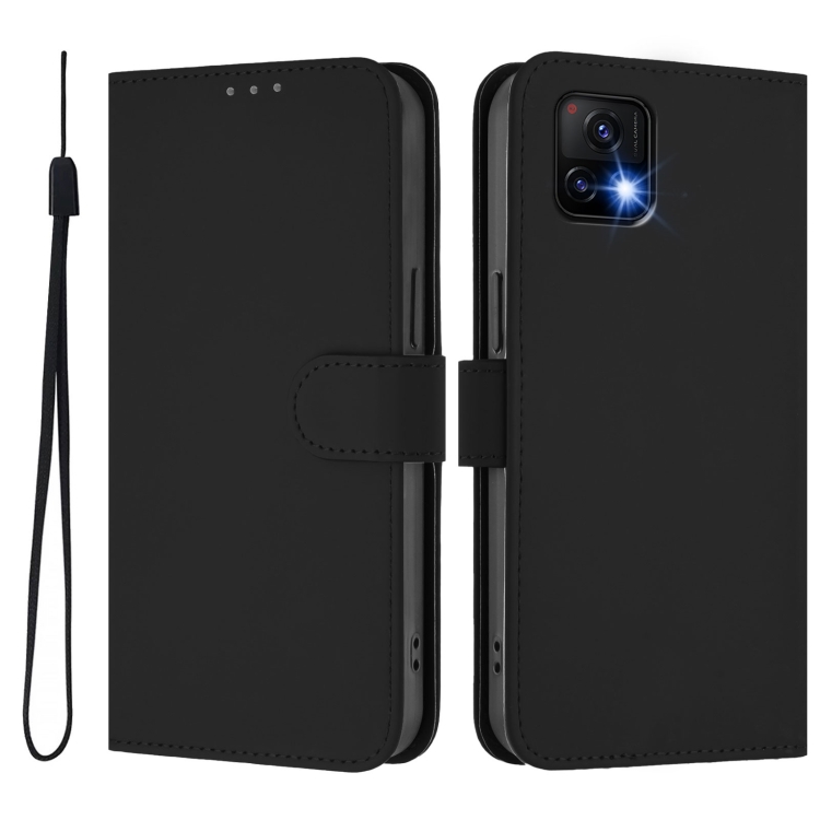 Funda de Cuero con Cordón para Teléfono con Diseño de Piel de Color Liso y Tacto Suave para Vivo Y52S 5G / Iqoo U3 / Y31S 5G (Negro)