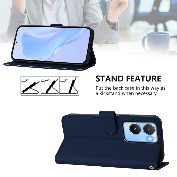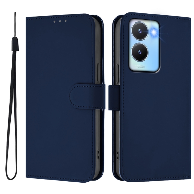 Funda de Cuero con Cordón para Teléfono con Diseño de Piel de Color Liso y Tacto Suave para Vivo Y56 5G Global / Y16 4G Global (Azul Marino)