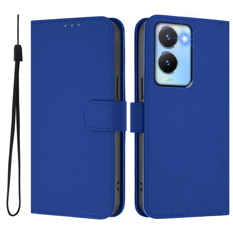Funda de Cuero con Cordón para Teléfono con Diseño de Piel de Color Liso y Tacto Suave para Vivo Y56 5G Global / Y16 4G Global (Azul Oscuro)