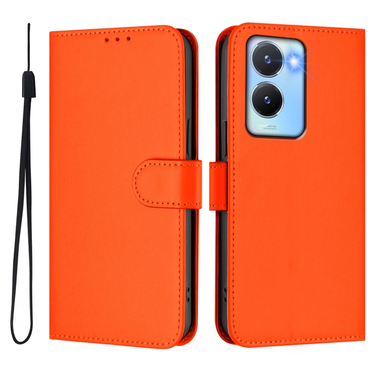 Funda de Cuero con Cordón para Teléfono con Diseño de Piel de Color Liso y Tacto Suave para Vivo Y56 5G Global / Y16 4G Global (Naranja)