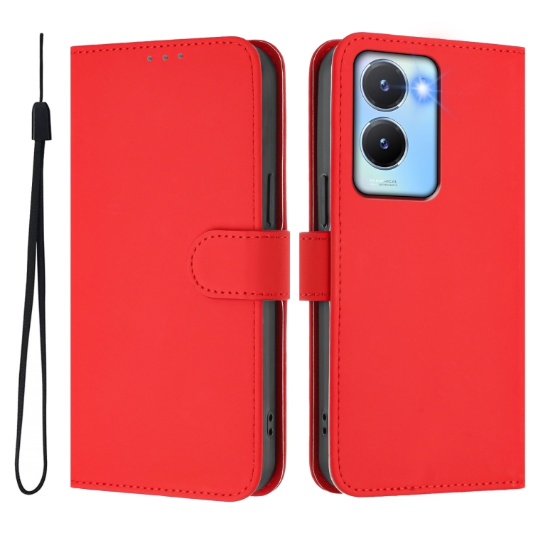 Funda de Cuero con Cordón para Teléfono con Diseño de Piel de Color Liso y Tacto Suave para Vivo Y56 5G Global / Y16 4G Global (Rojo)