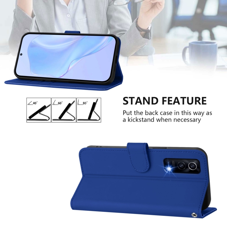 Funda de Cuero con Cordón para Teléfono con Diseño de Piel de Color Liso y Tacto Suave para Vivo Y72 5G / Iqoo Z3 / Y52 5G (Azul Oscuro)