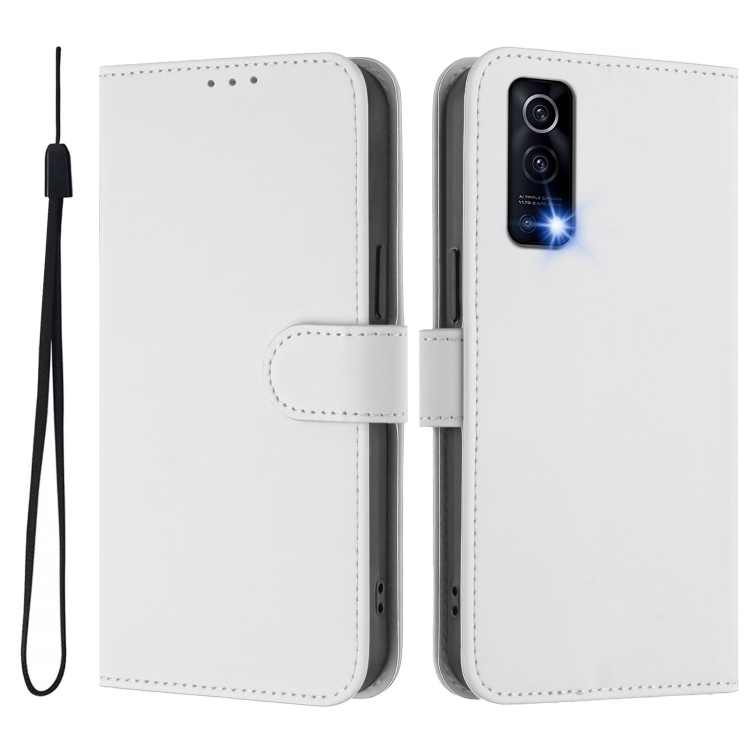 Funda de Cuero con Cordón para Teléfono con Diseño de Piel de Color Liso y Tacto Suave para Vivo Y72 5G / Iqoo Z3 / Y52 5G (Blanco)