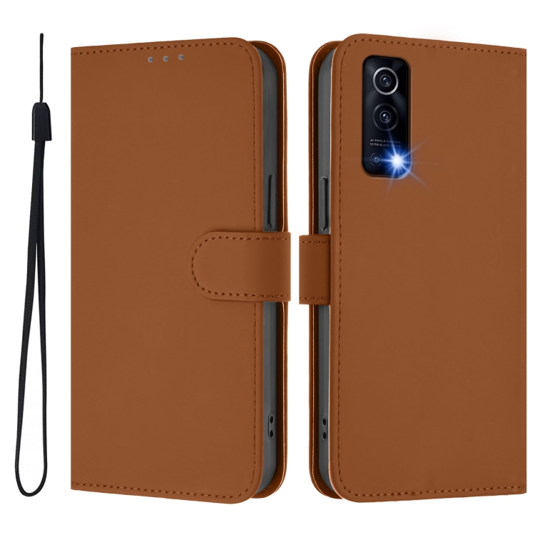 Funda de Cuero con Cordón para Teléfono con Diseño de Piel de Color Liso y Tacto Suave para Vivo Y72 5G / Iqoo Z3 / Y52 5G (Marrón)