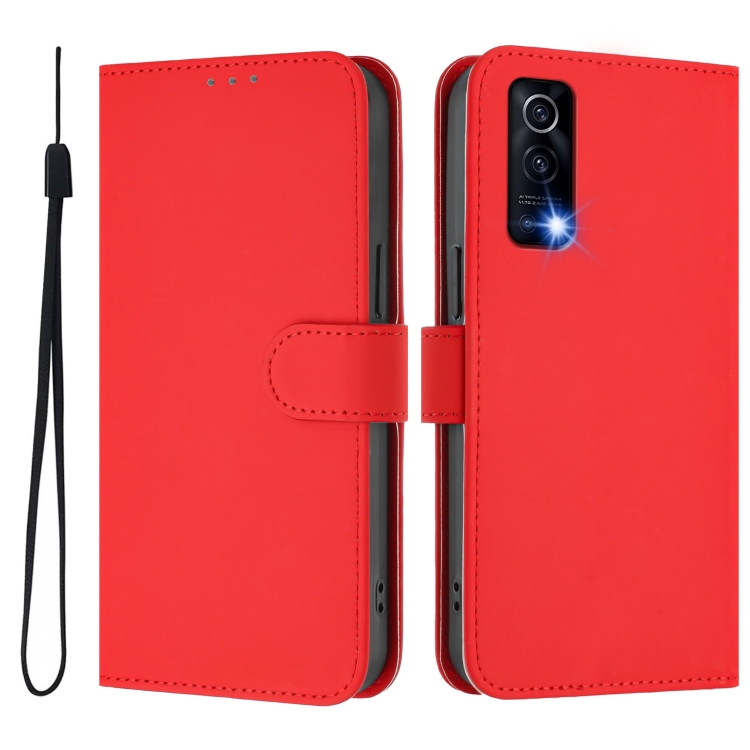 Funda de Cuero con Cordón para Teléfono con Diseño de Piel de Color Liso y Tacto Suave para Vivo Y72 5G / Iqoo Z3 / Y52 5G (Rojo)