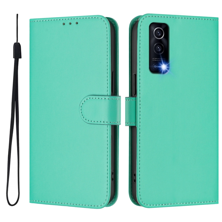 Funda de Cuero con Cordón para Teléfono con Diseño de Piel de Color Liso y Tacto Suave para Vivo Y72 5G / Iqoo Z3 / Y52 5G (Verde)