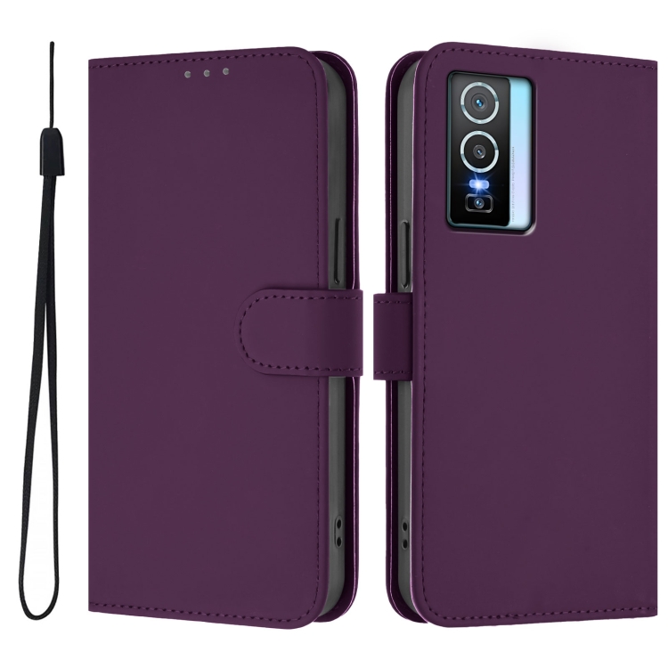 Funda de Cuero con Cordón para Teléfono con Diseño de Piel de Color Liso y Tacto Suave para Vivo Y76 5G (Violeta)